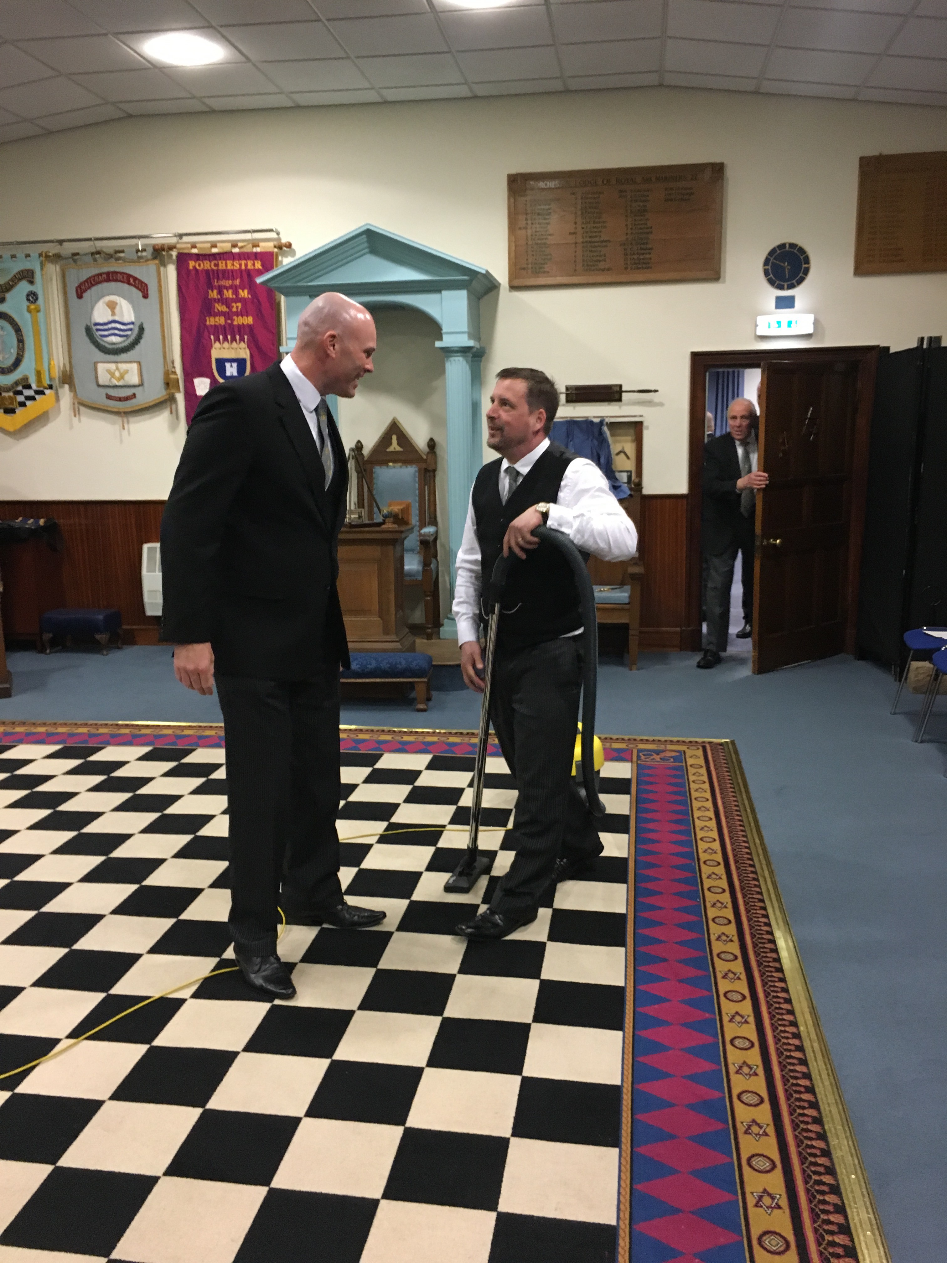 Is this a new beginning for our multi skilled DC? His talents know no bounds as he demonstrates his domestic skills in full view of the Master Elect whilst others rush into the Lodge to behold the sight!